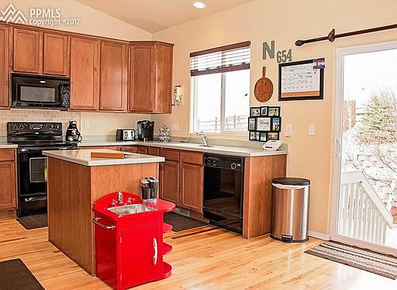 Come see this immaculate 1 owner home in District 20. This home boasts gorgeous Pikes Peak views from the front porch while the upgraded lot backs to OS in the rear. No neighbors behind! Beautiful maple cabinets & hickory wood floors in entry and Kitchen. Huge eat in kitchen with island and breakfast nook. Large dining room for special occasions and two large living areas complete with a gas burning fireplace with a blower. 3 car garage with mud/laundry room on main level. Corian countertops and new carpet throughout! House has Air conditioning, humidifier and a security system. Fully landscaped with sprinkler system and privacy fence and patio, it even has an upgraded holiday lighting package! Not a single detail is overlooked! Newly finished basement with two bedrooms one full bath and a wet bar featuring self closing maple cabinets and granite. 9 ft ceilings in basement leave it feeling open and bright! Pre-wired to be a sports or movie lovers retreat! . Master bedroom with vaulted ceilings and cedar plank floors in the walk in closet. Large five piece master retreat with corian countertops. Two more bedrooms and a full bathroom upstairs as well. Levolor blinds throughout home. This is a MUST see. This house is in pristine condition and is ready for you to call it home! Buyer to verify all square footage.