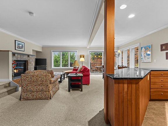 Nestled along Stowe’s renowned Topnotch Resort, this 2,850 sqft condominium offers a harmonious blend of luxury, practicality, and outdoor spaces. Built in 2004, the spacious 3 bedroom, 4 bath residence boasts contemporary design with a touch of Vermont charm, creating a warm and inviting atmosphere suitable for a lucrative vacation rental or a personal escape. The residence's heart is its privacy, with a sun-filled deck and wrap-around patio, framed by mountain views and mature forest. Upon entering, you'll find a generously sized mud room, ensuring a seamless and organized transition between the outdoors and indoors. The expansive open-plan kitchen, dining, and living room has western mountain exposure, filling the space with natural light and scenic beauty. A private, first-floor guest suite with an ensuite bath provides comfort and convenience for visitors. Upstairs, the spacious primary suite features a gas fireplace and a large soaking tub, while a second ensuite bedroom offers peaceful views of the surrounding forest. Central AC ensures year-round comfort. Downstairs, discover an oversized TV/game room, perfect for unwinding after hitting the slopes. Ideally located between the Village of Stowe and the skiing of Mount Mansfield and Spruce Peak, this turnkey property offers Stowe's most cherished amenities at your doorstep.
