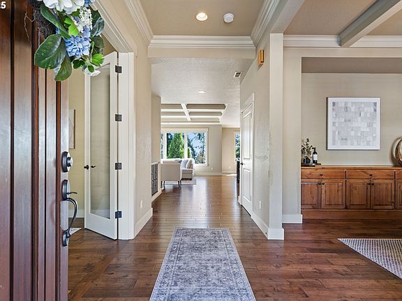 Welcome to a stunning home with a main-level primary suite offering privacy and captivating views of Mt. Hood, woods and territory. This meticulously maintained, one-owner residence showcases the sought-after open great room floor plan with four bedrooms, a dedicated office, and an additional family room. The inviting island kitchen — featuring newer quartz countertops — includes a breakfast bar, making it perfect for both casual dining and entertaining. Expansive windows fill the interior with abundant natural light. Savor your morning coffee or evening wine on the Trex deck while soaking in breathtaking views of Mt. Hood and partial river vistas. The lower level impresses with more amazing views from the bedrooms and great room, plus a convenient kitchenette—ideal for guests or multi-generational living. You’ll also find generous walk-in storage and a spacious three-car garage for ample parking and organization. The private backyard is a rare gem, complete with a flagstone patio and additional scenic views. Ideally located near downtown Camas, parks, trails, and freeway access, this exceptional home is served by the award-winning Camas School District. A perfect blend of comfort, convenience, and panoramic beauty—ready to welcome you home.