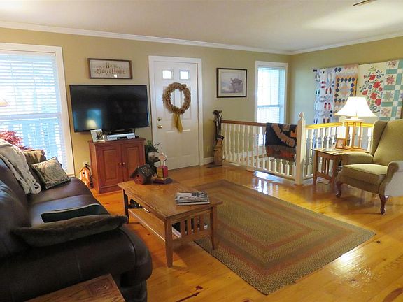 Custom built one owner home with all hardwood flooring except bathrooms. Secluded home nestled on 6 wooded acres. This 3 Bedroom, + 4th as Office, 3 Bath home has Granite in the Kitchen with Bar area as well as area for Dining Room table. The Open Concept allows you to design your living spaces to your preference. The basement has approximately 10' ceilings with bamboo hardwood floors, a Rec Room, Bedroom and Bath with heated tile flooring and rain tile shower. Master bath has large walk in tiled shower with plenty of storage space. Single garage with separate driveway allows easy access for separate living. This garage space also has area for a workshop. Well on property has been capped off. Cable TV/Internet. Whole home generator. When leaves are off the trees, owners can sit on front covered porch and enjoy the beautiful scenery. Steep driveway allows for privacy.