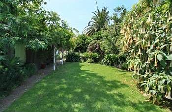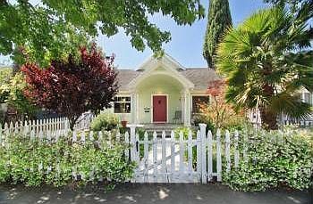 This 1920~s Craftsman home retains its splendid original character. Wood floors run throughout the home, creating a rich, warm atmosphere. The living room features a fireplace and crown mouldings, and is open to a large dining room with built-in china cabinet and glass door out to a side deck. The kitchen is charming, containing a painted wood floor, wood cabinets, farm sink, and open shelf storage. The master bedroom has a greenbelt view of the yard while the second bedroom has a large window and glass door to the yard. Wainscoting lines the walls of the bathroom, and built-in drawers create linen storage. The 3rd bedroom is a convertible den off the kitchen. Outside, the landscaped yard bursts with color from many plant varieties. A detached guest house contains a private gated entrance, polished concrete floors, large living space with French doors to a vine-covered brick patio, sleeping loft, bath, and kitchenette with French Doors out to a delightful backyard patio.