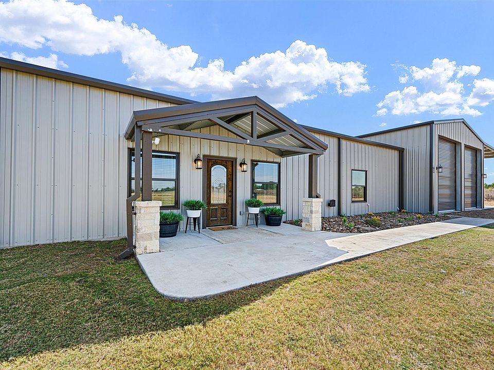 Stunning 3 Bed, 2.5 Bath Barndominium on 5+ Acres! Welcome home to this one of a kind Barndominium that perfectly blends rustic charm with modern luxury, all set on over 5 breathtaking acres! This open concept living space is bathed in natural light, thanks to soaring ceilings and oversized windows that bring the outdoors in. The kitchen boasts sleek stainless steel appliances, quartz countertops, and a generous island, perfect for entertaining or family meals. The private primary suite is the ultimate retreat, featuring a spa like walk in shower and plenty of room to unwind after a long day. Step out back to your covered porch, perfect for morning coffee or cocktails. Enjoy evenings by the fire pit and spacious pond, or simply soak in the serenity of your private paradise. Whether you're looking for a peaceful escape, place to entertain, or room to grow, this property has it all. Don’t miss your chance to own this modern country masterpiece! Schedule your private tour today!
