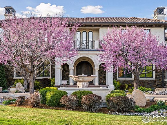 Discover this opulent yet refined architectural masterpiece in the esteemed Legend Ridge community of Niwot that feels like an undiscovered treasure and transports you to five star living every day. This custom home is designed to immerse you in breathtaking views of the spectacular Rocky Mountains and provides the opportunity to embrace a Colorado lifestyle unlike any other. With miles of trails out your door and close proximity to charming downtown Niwot and excellent public and private schools, this one of a kind property is not to be missed. As twilight falls, watch the birds swoop gracefully from arch to arch, moving between flowering trees - a serene backdrop to your evenings. Enjoy a fine Super Tuscan on the covered patio as cyclists and neighbors stroll the wonderful gravel trail with its mountain backdrop on their nightly routines. By sunrise, start your day with a view of the alpenglow touching Long's Peak, an almost surreal experience framed perfectly by the home's various viewpoints - courtyards, balconies, and patios.The centerpiece of this home is its stunning three-story curved staircase, topped with an illuminated dome ceiling. Spacious rooms are impeccably detailed with crown moldings, coffered ceilings, and premium designer finishes. The chef's kitchen flows seamlessly into the great room with soaring ceilings, leading to the covered porch with a Viking gas grill, perfect for entertaining al fresco. The exquisite gardens, complete with water features, are ideal for gatherings under the open sky. The primary suite offers a spa-like bathroom, massive custom closet, sitting area & private balcony facing Long's Peak. Additional amenities speak to a home that is built for a crowd with plenty of flexibility for multi-generational living - an elevator, 5 en-suite bedrooms, two main floor offices, a high end movie theater, home gym, wine cellar, & six-car heated garage with separate workspace. This exceptional Niwot property offers an unrivaled lifestyle.