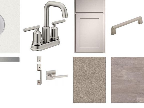 Milan collection kitchenPrivate primary suiteSeamless indoor-outdoor livingSpacious islandGray cabinetsCrisp white backsplashSatin nickel hardware