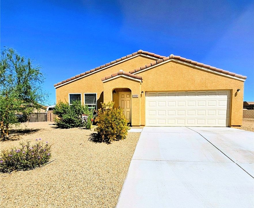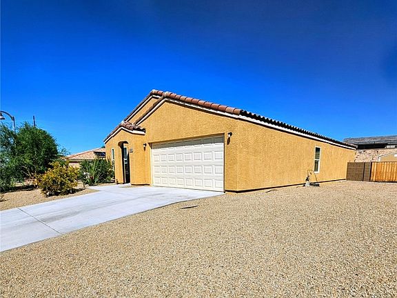 Located at 6542 S Mystic AVE, Mohave Valley, Arizona, this single-family residence with 4 bedroom floor plan with open living/dinning presents an exceptional opportunity to embrace modern living. Built in 2022, this property offers the appeal of recent construction. With 1609 square feet of living space, the residence provides ample room to create personalized sanctuaries within its four bedrooms. The back yard has been transformed into a desert oasis with landscaping, above ground pool for those hot Arizona summers, gazebo, and 10x10 shed for extra storage. This Mohave Valley single-family residence offers a chance to own a recently constructed home.