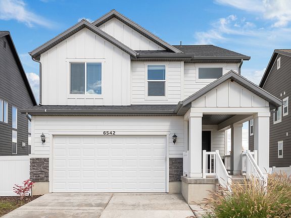 Clean, bright, and beautifully simple - this Herriman two-story is a true blank slate for your personal style. Over 2800 sq ft with an open layout, soaring ceilings, and large windows that fill the home with natural light. The kitchen offers quartz countertops, an oversized island, and timeless cabinetry with a large dining area attached. Upstairs, the spacious primary suite features a walk-in closet and double-sink bath, plus two additional bedrooms and a full bath. The raised deck overlooks open space and mountain views, perfect for quiet mornings or entertaining. With a fully fenced yard, two-car garage, and room to grow in the unfinished basement, this home is move-in ready and waiting for you to make it your own.
