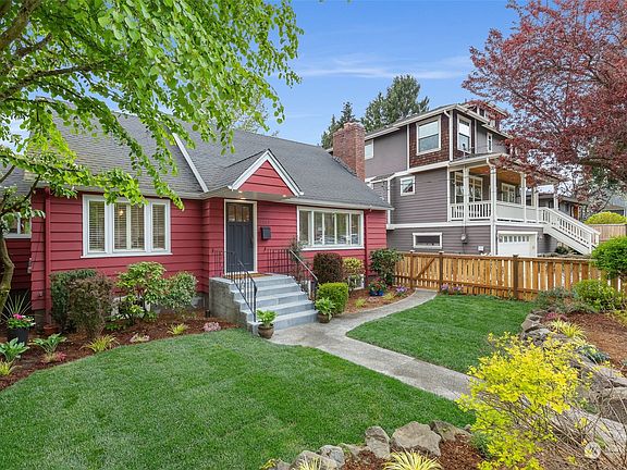 Sunny living with walls of windows, period details and space galore make this such a great home. An open kitchen and family room flow easily outside to your private back yard sanctuary for entertaining or a quiet place to think about your day. With two spacious bedrooms on the main that share a full bath, the upstairs can be the perfect primary suite with another full tile bath and room for your office. The lower level has great space for rainy day play with a huge rec-room, cozy fireplace, room for ping pong, cards or simply the best hang out space for everyone. So close to fun eateries, bakeries and parks. The express bus to town and light rail are nearby too. You will love this sweet dead end street right where Bryant and Ravenna meet.