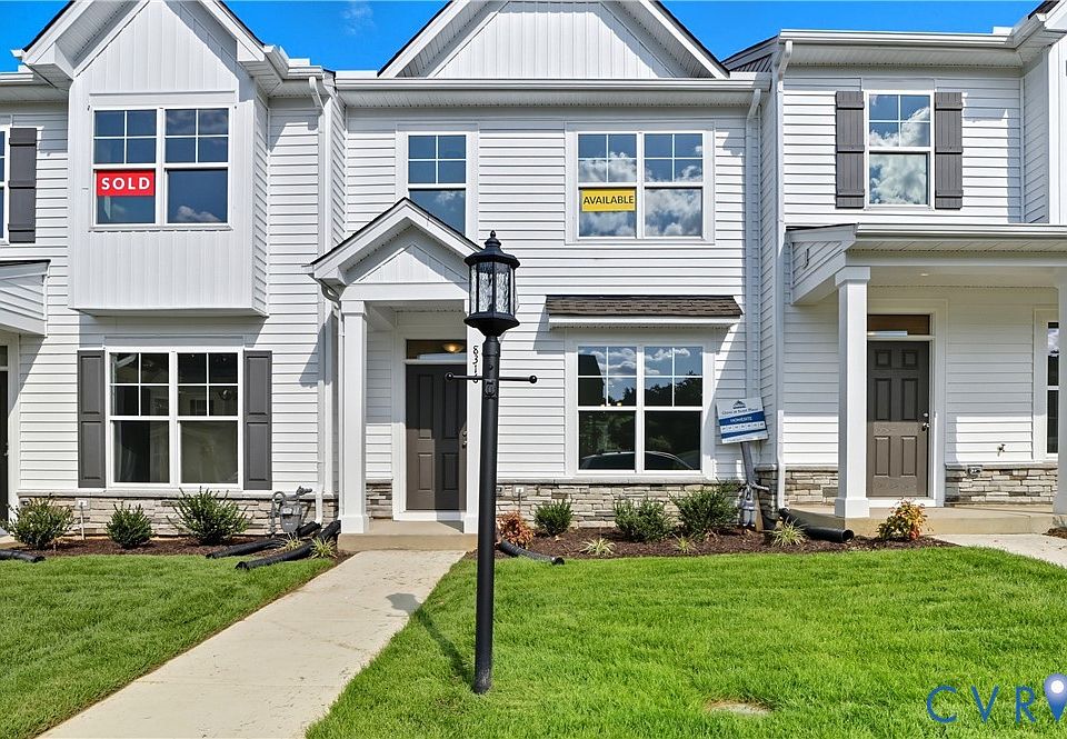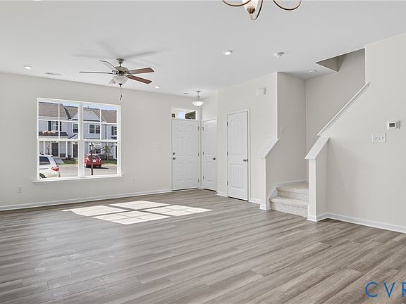 The Morganton is a two-story townhome with 2 bedrooms and 2.5 baths. The first-floor main living areas feature the rich color variation of the Oyster oak EVP flooring. Upon entering, you'll be greeted by the spacious family room that adjoins a dining area. The gourmet kitchen includes crisp white cabinets, stone gray island cabinets with bold black granite countertops, and striking black accents, an island, a pantry, and an adjoining cafe area. A powder room for guests completes the first floor, along with a front porch. Upstairs, you'll find the first primary suite, featuring an ensuite bath with dual vanities, a linen cabinet, and a spacious walk-in closet. The second primary bedroom has an ensuite bath and a double-door closet. A convenient hall laundry room completes the second floor. Planned amenities in the community include a 200,000-square-foot town center with shops and restaurants, a luxury clubhouse with a state-of-the-art fitness center, an Olympic-sized swimming pool, tennis courts, and recreation fields. Watermark is an upscale community nestled around the beautiful Watermark Lake in award-winning Chesterfield County, featuring Eastwood Homes’ most innovative townhome designs in a master-planned setting.
