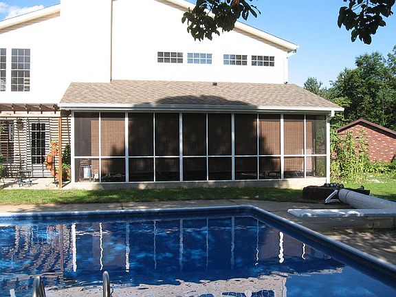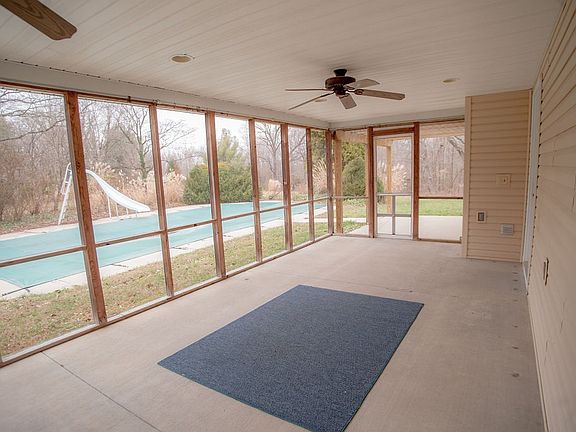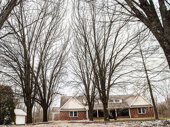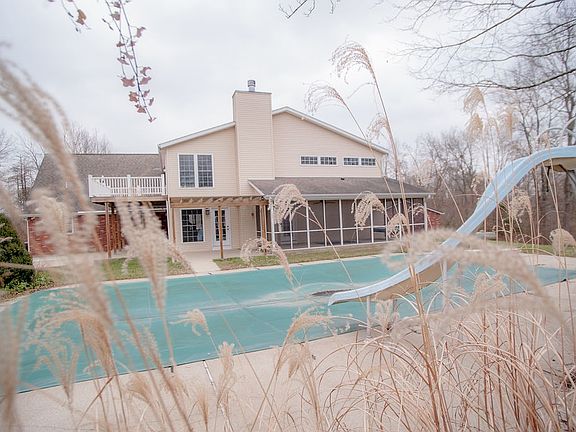 Custom built 4 bedrooms, 3 full baths that has so much to offer! Huge kitchen with massive island, custom hickory cabinets, 2 sinks, Bosch appliances and walk-in pantry. Great room with stone fireplace and floor to ceiling windows, large front room with 20' ceilings and hand hewn wood flooring in the kitchen, great room and front room. There are two suite bedrooms with baths and all bedrooms are on the main level. The upper level is a library/game room and a studio with large closets. The back of the home is super for entertaining with the screened in back porch, in ground heated pool and pool house and hot tub. 4 car detached brick garage all on 5 acres.