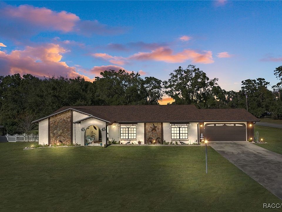 The search is over! This Inverness Highlands home is sure to check your boxes featuring 3 spacious bedrooms, 2 freshly updated bathrooms and kitchen, a large 2 car garage, newly refinished screened in pool and an over half an acre corner lot tucked away in a quiet neighborhood. I can't wait to show you the inside but the sellers are busy packing so inside pictures are coming soon but if you would like to schedule a showing or a video tour we will gladly oblige. The interior does feature the same tile marbled flooring all throughout so no carpets to replace. Both bathrooms have been completely renovated with new walk-in showers, sinks, and toilets. The fully remodeled kitchen has been updated with granite countertops, soft close cabinets and drawers and extra cabinets have been added for maximizing storage in the kitchen for all your gadgets! The screened in back porch has been updated with beautiful pavers, new doors and new modern fans and lighting. No stone left unturned here including a brand new roof in 2022, newer 6 ton HVAC unit, wrap around gutters and downspouts, 30-amp camper hook up, and 220 power plumbed in for a pool heater. The location is just a few minutes from downtown Inverness where the Withlacoochee State Bike Trail is located, multiple boat ramps for fishing on the many lakes or river, shopping, dining and entertainment regularly on the square! Citrus County is centrally located to just about all things Florida. An hour to Orlando or Tampa for Sports games and theme parks. The best beaches in Florida are also within an hour drive. This house is NOT located in a flood zone and does NOT have a pesky HOA to worry about. Call listing agent today to inquire about a showing!