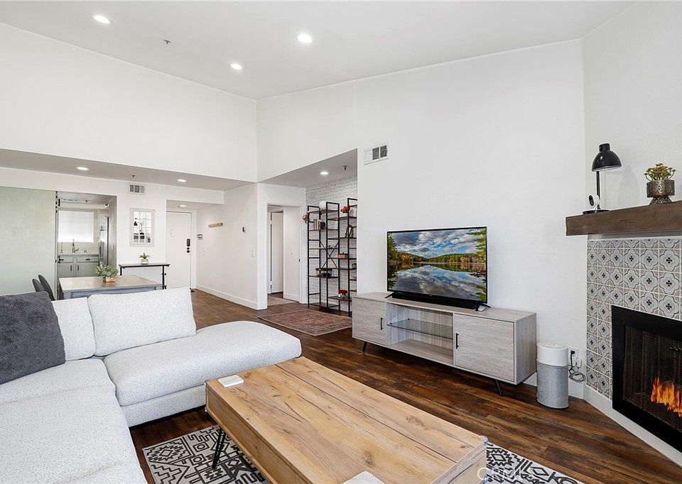 STUNNING TOP-FLOOR CONDO WITH VAULTED CEILINGS & OPEN VIEWS. Welcome to 6545 Reseda Blvd #19, a beautifully upgraded 2-bedroom, 2-bathroom condo offering style, comfort, and peace of mind. This home features soaring vaulted ceilings, abundant natural light, and sweeping mountain and city light views. Inside, the living and dining areas feel open and inviting with newer, high-quality wood/laminate flooring, recessed lighting, and a decorative gas fireplace that adds character and warmth. The modern kitchen showcases sleek Quartz countertops, stainless steel appliances, and a built-in reverse osmosis water filter with pure alkaline water at the tap. A new premium full-capacity washer and dryer are tucked neatly into a dedicated laundry closet. The primary suite provides a private retreat with two large closets and a remodeled en-suite bathroom featuring a dual-sink Quartz vanity and a walk-in shower with a dual shower system, including a rainfall shower head. The second bedroom offers flexibility for guests, a home office, a nursery, or bonus space. Step outside to your private balcony, where open views create an enhanced sense of tranquility — the perfect spot to enjoy morning coffee or evening sunsets. Additional highlights include built-in smart features such as the latest Google Nest energy-saving thermostat, smart light switches that connect to your phone for control by voice or remotely, and a keyless touchpad front door lock. The home also offers a recently serviced central air and heating system for year-round comfort. For added convenience, enjoy two side-by-side parking spaces with storage shelving in a remote-controlled gated subterranean garage, a secure intercom system with direct phone access for visitors, a community elevator, and extra guest parking. In addition, the community recently completed extensive renovations — including all new roofs and gutters, fresh exterior paint, and full balcony and walkway reconstruction — ensuring a refreshed, upgraded, and well-maintained property. Best of all, this condo sits directly across from Reseda Park, with its serene lake, playgrounds, sports courts, baseball fields, community center, picnic areas, public swimming pool, and more — endless recreation at your doorstep. Just minutes from CSUN, Pierce College, shopping, and dining, this home combines modern upgrades with unbeatable convenience. A rare top-floor opportunity in a prime location — stylish, refreshed, and truly turnkey ready!