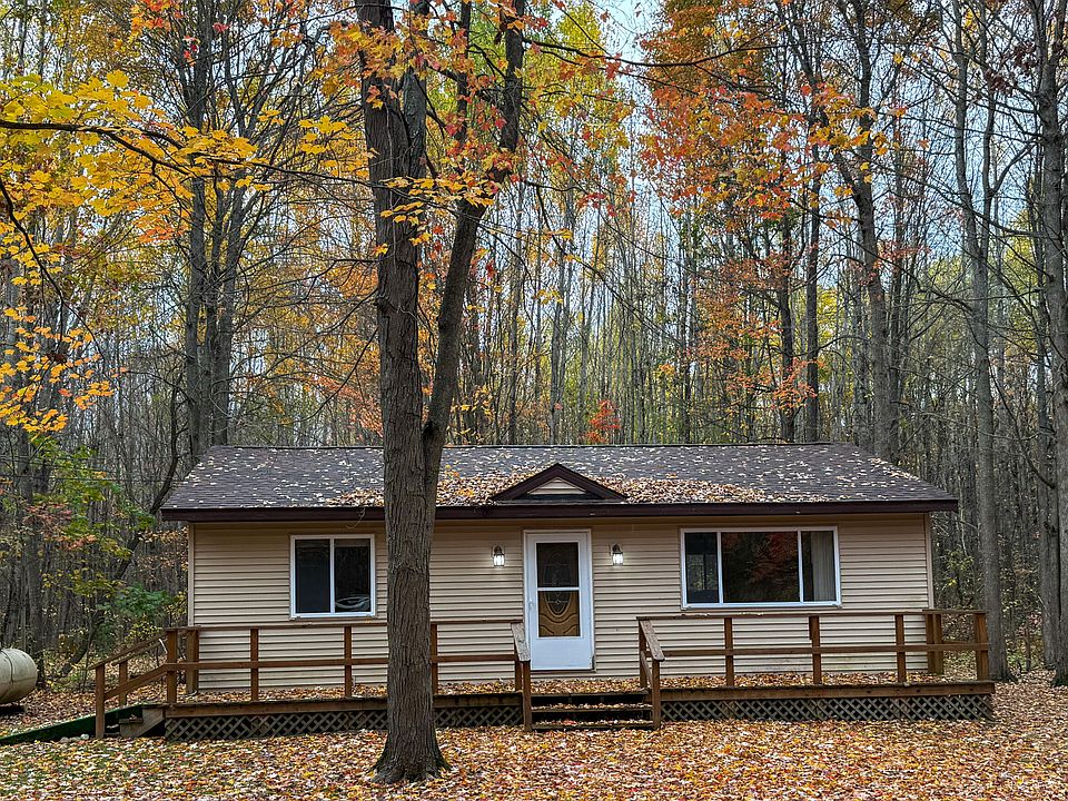 Tucked away at the end of a long, private driveway, this 2-bedroom, 1-bathroom home offers peace, privacy, and plenty of space to enjoy the outdoors. With 1,100 square feet of comfortable living space, this home features a large kitchen with ample cabinetry and room for family gatherings. Stay comfortable year-round with a forced air furnace and central air conditioning. The property also includes a spacious two car detached garage, perfect for vehicles, tools, or extra storage. Whether you're looking for a quiet place to call home or a private getaway surrounded by nature, this property delivers both comfort and seclusion.