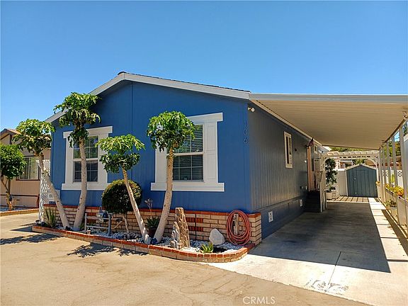 Stunning 3 + 2 now available in great family park! This home is an absolute must see! It Features Cathedral Ceilings through out, big bright luxurious living room with skylights in the kitchen and guest bathroom and open floor plan. The kitchen is huge and features newer appliances such as a range, refrigerator, dishwasher, microwave and has recessed lighting on either side of the skylight, a breakfast bar that fits high chairs and chandeliers in the living and dinning room. It also has a very spacious laundry room with laundry hook ups and has large washer and dryers , plus extra storage space. The two guest bedroom are Loft beds with custom decorated walls and closets. The rooms are spacious, bright and airy. The guest bathroom has natural light coming through the skylight and has tile back splash, and a shower/tub. The Primary bedroom is a massive suite with his and her closet entry, his and her sinks, a huge spa with a large window that sheds the perfect amount of light for a nice relaxing bath, and it also has a separate standing shower. The car port can fit 3-4 cars.