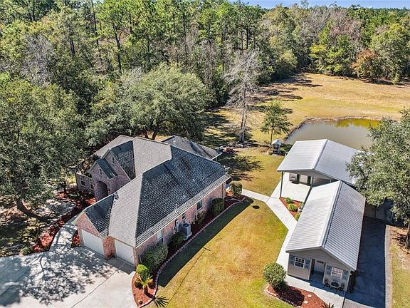 DON'T MISS OUT ON THIS STUNNING ALL brick home on 2.3 acres. Meticulously maintained. Home features a formal dining room adjacent to a big family room with gas fire place and windows overlooking the POND. Kitchen has granite counters and tons of cabinet space. Pretty primary bedroom with en suite that includes a jacuzzi tub. Large covered patio is great for family gatherings. Make smores in the firepit. GUEST HOUSE on property is 672 sq. ft. Use for family or tenant. Workshop for the family tinkerer.
