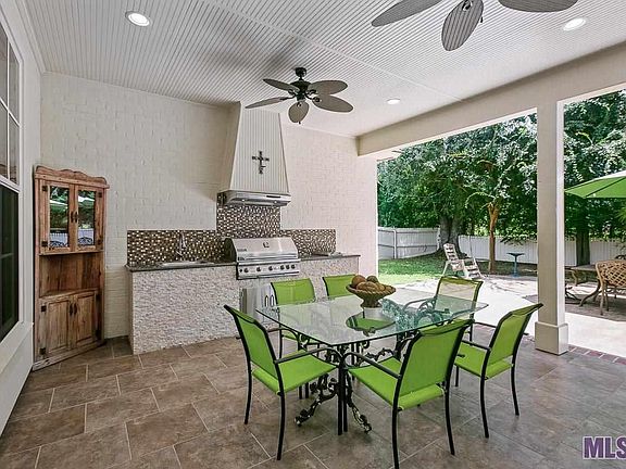 This beautiful 4BR/4BA custom-built home has been meticulously maintained by its one owner, and has a well-designed, open floor plan. It's situated on the cul-de-sac, so the location feels peaceful and private. The gourmet kitchen is generously-sized with a large island topped with slab granite, an eat-in breakfast counter, walk-in pantry, stainless appliances including a wall oven and gas cooktop, custom cabinets, and granite countertops. There's wood and travertine flooring throughout the home, except in the media room upstairs, which has theater-style carpeting. Included in the media room is the A/V equipment, theater seating, a wine chiller, slab countertop, and a sink. The laundry room has plenty of room, including space for an extra refrigerator, along with slab countertops and a sink. There are slab countertops in all of the bathrooms, as well as in the outdoor kitchen. Among the many amenities in this beautiful home are his-and-her master closets, an irrigation system with well-manicured landscaping, surround sound in the kitchen, keeping room, living room, master bedroom, media room and back porch, stainless grill and sink in the outdoor kitchen, a 10x15 enclosed storage area next to the garage, and extra parking for a boat.