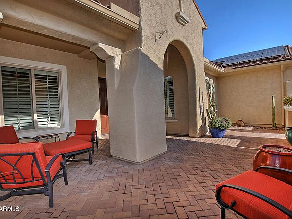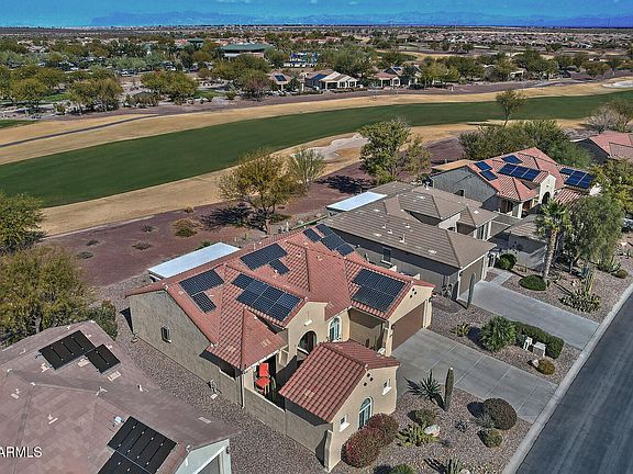 TEE IT HIGH AND LET IT FLY!! Enjoy the spectacular views from this PREMIUM GOLF COURSE LOT on Poston Butte! Your new home offers all the upgrades and options you should expect from this beautiful ''Paramount'' model, starting with an outdoor living space that offers an extended paver patio and courtyard, built-in BBQ, mature landscape and stunning fairway views. The home is just as gorgeous inside with details that include a gourmet kitchen that boasts upgraded cherry cabinetry w/crown molding, granite countertops, RO system, double ovens and newer appliances. Additional features include plantation shutters, upgraded tile flooring, beautiful REMODELED PRIMARY BATHROOM, ceiling fans, surround sound, 3 car garage, laundry cabinets w/utility sink and a SOLAR SAVINGS with a $14 average bill! Some furnishings available on a separate bill of sale. Take full advantage of our Anthem Grille, The Poston Butte Golf Club, learning center and all the festivities, activities and amenities a Sun City community has to offer. Remember you are buying a lifestyle that goes beyond the homes property lines. A MUST SEE HOME!!