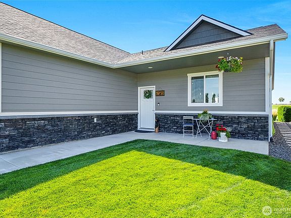 Step right out your back door onto the golf course! This beautiful home features upgraded cabinets with quartz counters throughout, a stunning tiled walk-in shower in the primary en suite, and durable Hardiplank siding with stacked stone accents. Relax on the charming front porch or enjoy endless views from the spacious back patio. The 26’ deep garage provides plenty of room. Located in The Legacy Resort at Frenchman Hills, a peaceful gated golf course community, you’ll love the serene lifestyle just 20 minutes from Moses Lake and minutes from hunting, fishing, ORV’ing, endless outdoor activities. Unwind with breathtaking sunsets and your favorite beverage—don’t miss this incredible home! Seller including 1 year of golf for 2!