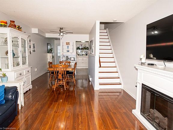 Get ready to be 'WOWED' by all the recent updates within the past 4 years, including new electric panel and additional wiring/plugs added in the kitchen and bathroom; new flooring throughout the main and upper level, COMPLETELY NEW KITCHEN including appliances countertop, cupboards and more! Also, new bathroom vanity, some light fixtures, painted throughout and an updated workshop on the basement level. Outside you will find your own private, custom built oasis with stadium turf, planter gardens, and a covered and enclosed patio area. Enjoy your summer BBQ looking out at your private backyard with a greenspace view and a trickling stream. With 1,098 sq ft (excludes the basement) this two bedroom condo offers lots of living space in an ideal location! Just a few minutes away, you will find Waterloo Park, the world famous St. Jacob's Farmer's Market, the fun year-round activities at Laurel Creek Conservation Area; and both Universities are conveniently nearby. This complex includes an inground, outdoor heated swimming pool and a playground for your summer fun. There is nothing to do but relax and enjoy this fully updated and well maintained, move-in ready townhouse with low condo fees (water included in the condo fees). TWO PARKING SPOTS are included, and flexible possession!