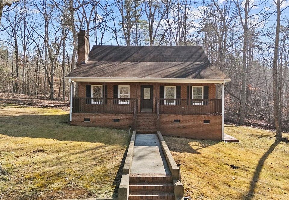 Discover peaceful mountain living in this inviting 3-bedroom, 2-bath home set on 2.67 private, wooded acres. As you step inside, you’re welcomed by a central staircase that opens to a warm living room with a wood-burning fireplace on one side and a flexible space on the other—perfect for a dining room, office, or cozy den. The main level features a spacious primary bedroom with a full bath and walk-in closet, a convenient walk-in laundry room, and a bright kitchen complete with an electric range/oven, dishwasher, and a charming breakfast area. Upstairs, you’ll find two bedrooms, each with its own private balcony, along with a full bath—perfect for guests or family. Enjoy outdoor living at its best with a rocking-chair front porch, a long private driveway, a concrete outbuilding, and an additional concrete pad ideal for a fire pit or future building. This property offers privacy, comfort, and true mountain living.