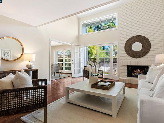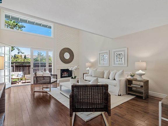 This lovely townhome situated in desirable Moraga Country Club has much to offer. Many amenities including golf, tennis, pickle ball, Olympic sized pool, bocce, newly-built fitness center and club house with restaurant & golf shop, all walkable from this location. Charming brick courtyard entry. The living room with a vaulted ceiling & the dining room have rich hardwood floors & French doors leading to the back yard. The kitchen has stainless appliances, granite counters and plenty of storage and opens to a cozy family area with pretty white built-in shelving and cabinetry. The spacious primary bedroom has a vaulted ceiling and accommodates a king-sized bed. It features an ensuite bathroom that has been expanded to provide two sinks, more closet space and a dressing area. A loft with built-in cabinets and desks is an ideal home office. The original outdoor catwalk has been enclosed & provides a interior laundry, extra storage and potential for craft room. A sunny second bedroom has a vaulted ceiling and separate A/C and large closets. New A/C & Heat pump installed September 2024. The back yard features a brick patio, perfect for entertaining and dining alfresco. Top-rated schools, walk to town and convenient location! Open Sat 9/14 1:00 to 4:00 Sunday 9/15 2:00 to 4:00.