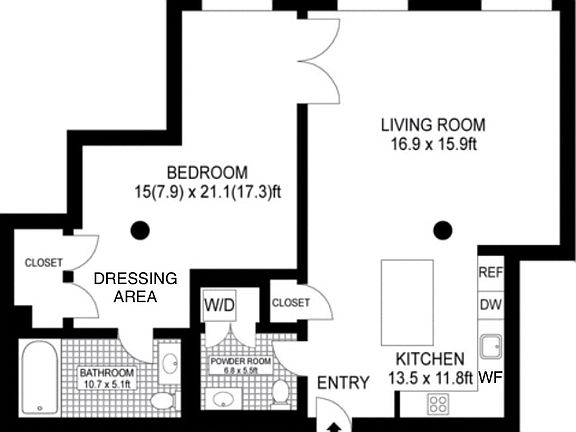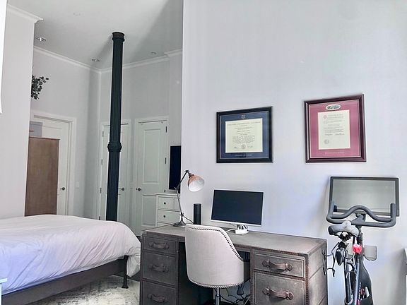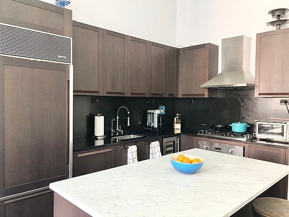 Virtual tours available via FaceTime or Zoom! With soaring 13.5 ft ceilings, this generously proportioned 1-bed, 1.5-bath home is soaked in light and space. The master suite includes a windowed alcove providing the option of a sizable en-suite home office space. Another alcove near the master bath offers a generous dressing area, with a french-doored closet of built-ins reaching all the way to the ceiling, and an expansive blank wall perfect for an armoire. The oversized chef's kitchen is equipped with a Sub-Zero refrigerator, pull-down sprayer and separate filtered water faucet, a hooded stainless steel Viking Range, an 18-bottle under-counter wine cooler, full-size dishwasher, a beautiful marble island with breakfast bar, and abundant storage. Additional luxuries include a custom coat closet, in-unit Bosch washer/dryer accompanied by built-in shelving, motorized solar and blackout shades on each of the giant 8 foot windows, dimmable Lutron lights (controllable by an app), and wide-plank walnut floors. The oversized windows overlook a landmarked space, whose gorgeous cherry blossoms bloom each spring just below the windowsills. The apartment features two of the building's iconic pre-war cast-iron columns. Originally built in 1887, The O'Neill Building was converted into 49 contemporary condos and offers a full-time doorman and concierge, dry-cleaning pickup and delivery, bike storage, and a beautifully landscaped 4000 sf common roof deck with outdoor kitchen, dining space and breathtaking city views. The O'Neill is located just steps from Union Square, Madison Square Park and Hudson River Park.