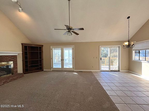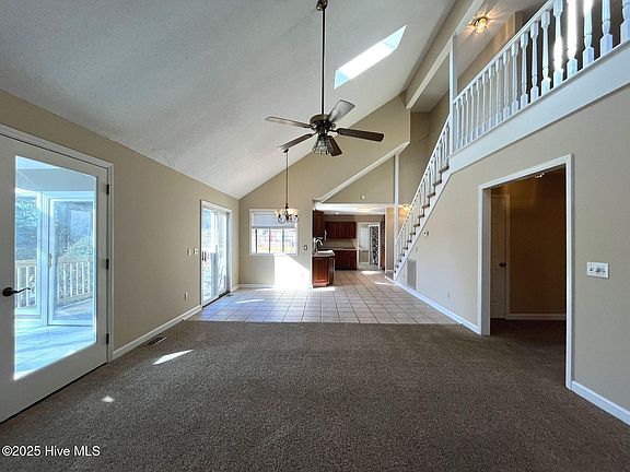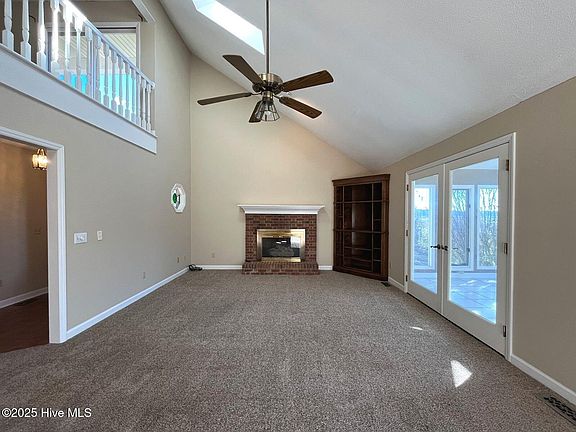 Enjoy this waterfront home in Woodlake with easy access to Fort Bragg and US 1. This 3 bedroom 2.5 bath home has distinctive character and charm. The open floorplan features high ceilings with skylights showcasing naturing lighting in the main living area. The large living area has sliding glass doors to an enclosed sun room with spectacular views. The beautiful kitchen includes plenty of cabinet space, stainless steel appliances, and a double sink. The kitchen opens up to a roomy eat in area. The enormous master suit is on the first level and features built in cabinets and a private master bathroom. Also on the first level is a guest bedroom and full bathroom. Walk upstairs to the open and airy bonus / 3rd bedroom. Guests can enjoy privacy and their own private balcony with a lake view. Whether relaxing in the Carolina room or entertaining on the large back deck you are sure to enjoy the peaceful surroundings of Woodlake.