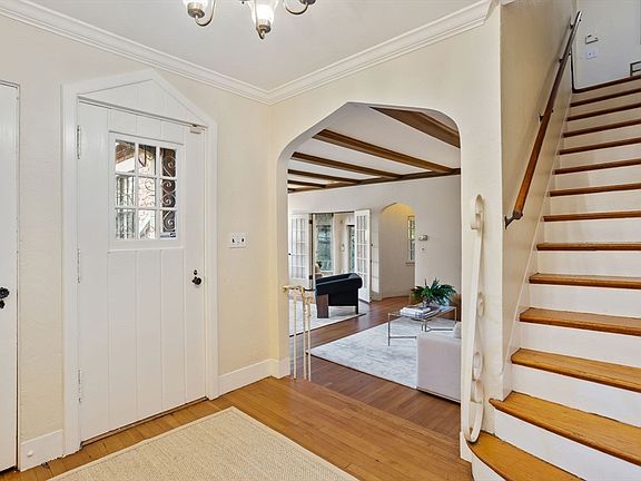 Eat-in kitchenLush yardFormal dining roomHardwood floorsInviting sun roomArched openingsPlentiful cabinets