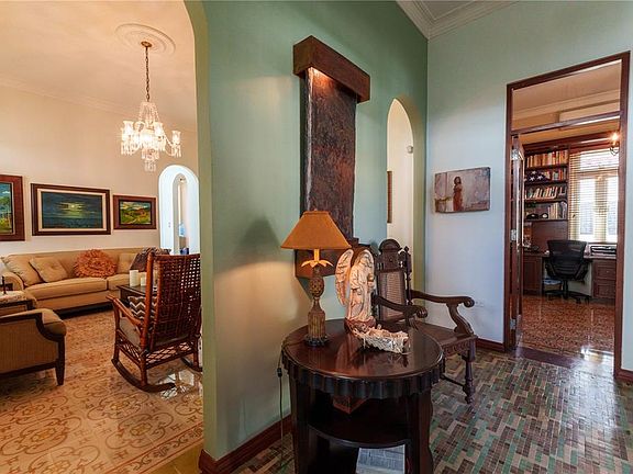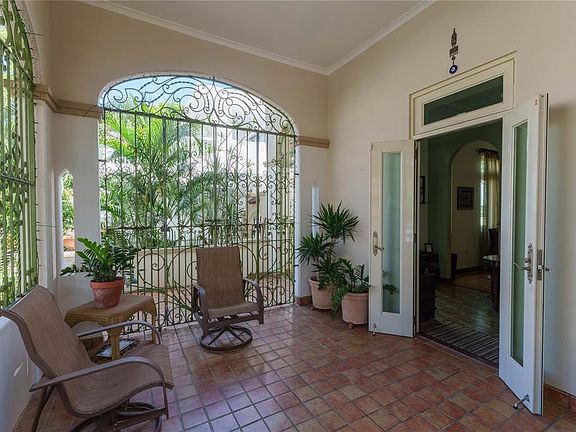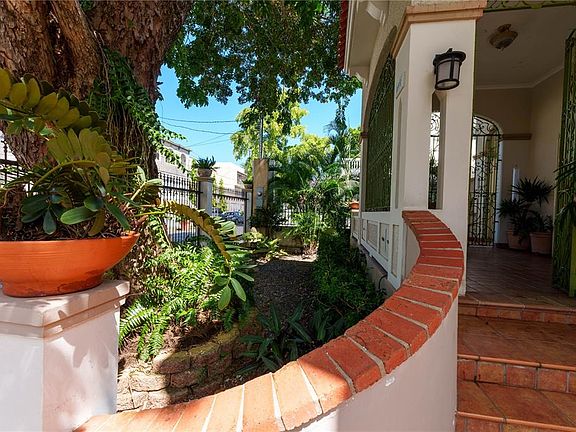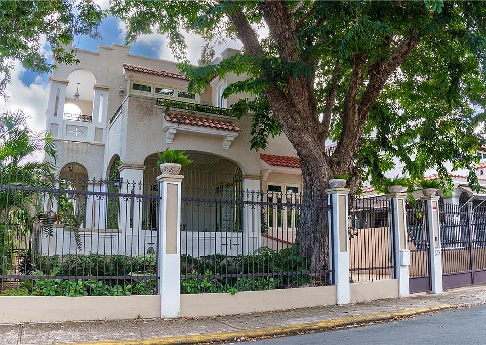 One or more photo(s) has been virtually staged. This luxurious masterpiece is a true architectural treasure, showcasing a stunning stucco façade, wrought-iron balconies, hand-crafted Spanish tiles, and grand mahogany arched doors beneath classic red-tile roofs. The property's majestic colonial-style fence, with its decorative columns and ornate ironwork, frames the home beautifully, complete with an electric gate for modern convenience. Everything about this residence exudes romance and artistry — a one-of-a-kind work of art. A true jewel. Fantastic. Magnificent. Ethereal and exotic. Magical and timeless. First Level: A charming balcony and welcoming foyer open to an extraordinary library — a true dream space. Every corner is adorned with exquisite craftsmanship, from hand-carved cement columns connecting the library and living room to the high, molded ceilings and original Spanish ceramic tiles that define its historic elegance. The result is a seamless blend of authentic Spanish Colonial architecture and refined luxury. Second Level: The primary suite offers a private balcony and terrace, along with a spacious, elegant bathroom featuring both bathtub and shower — a private sanctuary of relaxation. Three additional bedrooms, each with its own bathroom, complete this exceptional floor plan. Location: Ideally located next to the Puerto Rico Conservatory of Music, and only two minutes from the Puerto Rico Convention Center, the Pan American Cruise Pier, and the exclusive Club Nautico marina. Within five minutes you can reach the historic magic of Old San Juan or the vibrant energy of Condado's coastal lifestyle