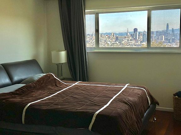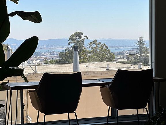 Furnished 1 bedroom apartment available for rent in Twin Peaks. Enjoy panoramic views of San Francisco, Oakland, and the bay from both rooms. Includes a reserved private parking spot.
