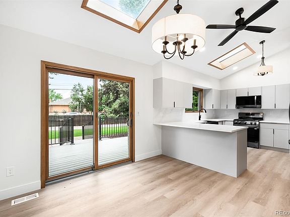 A fully remodeled blend of modern refinement & architectural warmth, this Boulder residence showcases craftsmanship & design. Huge backyard! Nestled in a serene enclave, every level of this thoughtfully curated home offers style, comfort, & enduring quality. On the main level, an updated sunroom includes a dedicated split-unit AC/heater—perfect for enjoying Colorado’s seasons year-round. The heart of the home, the fully remodeled kitchen, features sleek new LG appliances, refined cabinetry, & contemporary fixtures, all near a generous living space. Expansive Anderson windows & a matching patio slider invite natural light & provide seamless indoor-outdoor flow. The mid-level offers a private retreat w one beautifully appointed bedroom & a remodeled bathroom featuring a modern walk-in shower—ideal for guests. Upstairs, a second bedroom & updated bathroom set the tone for elevated living. The primary suite is a masterclass in understated luxury, complete w a cozy wood burning fireplace, dual-sink vanity, & an elegant walk-in shower. Thoughtful touches like upgraded doors—either newly installed or custom-stained — add harmony & intention throughout. The lower level is fully finished, providing two additional bedrooms & anchored by an updated wood fireplace, blending warmth w sophisticated style. Whether used for family, guests, or creative space, each room reflects the home’s commitment to style & usability. A finished garage features a new door & frame, adding both visual appeal & convenience. New LVP flooring, fresh interior/exterior paint, & all-new light fixtures elevate every corner. Behind the walls, a new electrical panel, wiring, switches, & outlets ensure modern performance w timeless aesthetics. Outside, a new Trex deck offers the perfect backdrop for dining al fresco or entertaining under the stars. The original brick exterior has been lovingly preserved, creating a stunning architectural statement, & the new Anderson front door opens to a welcoming interior.