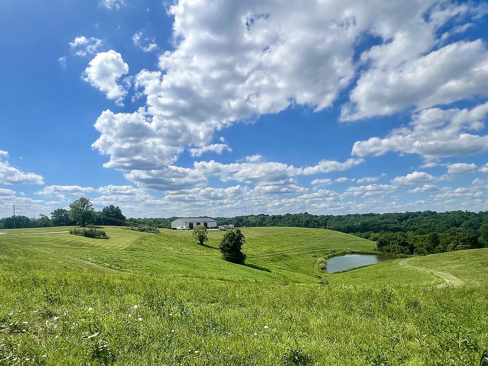 REMARKABLY BEAUTIFUL 27+ ACRES with a total of 829' of road frontage! Features a pond and creek at the back of the property with a 48 X 100 METAL BUILDING - FRAMED FOR 4 BR, 2 BA LIVING QUARTERS WITH A KITCHEN AND GREAT ROOM IN THE LOWER LEVEL!!!!!