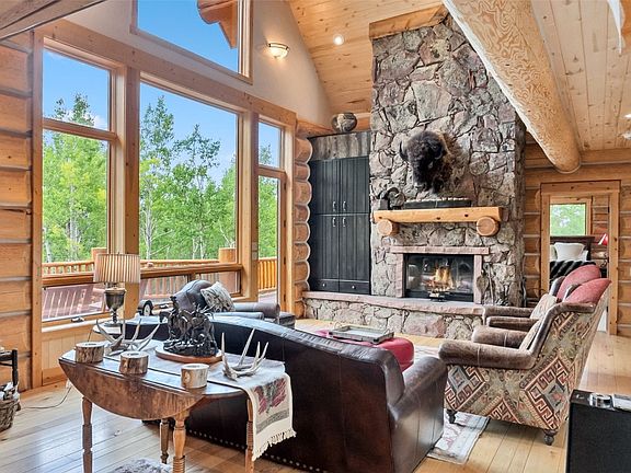 Welcome to your MOUNTAIN RETREAT in the highly coveted Silverheels Ranch, where this EXQUISITE log home awaits. Nestled on 11 acres of pristine aspen and pine forest with CAPTIVATING ROCK OUTCROPPINGS, this property offers the perfect blend of natural beauty and luxury living! FOUR spacious bedroom suites, each with a full bathroom and walk-in closet, provide ample privacy and comfort! After a long day of hiking in the National Forest at the North end of the subdivision, bask in the breathtaking views of Mt. Silverheels from the large deck featuring an 8 person hot tub, just steps from the Primary Suite! The interior of the home is bathed in natural light with expansive views of the surrounding landscape creating an inspiring backdrop for daily living. Enjoy numerous well designed spaces within the home for rest and relaxation or grand gatherings: Great Room with wood burning fireplace surrounded by gorgeous moss covered granite stone, Loft ideal for a home office or a cozy reading nook, Lower Level Game Room with a wet bar, pool table and shuffle board for the ultimate game nights! Recent upgrades include NEW BOILER, NEW HOT WATER HEATER and EXTERIOR STAINING! Whether you seek a full-time residence or a vacation getaway, this property provides a lifestyle of comfort, serenity, and natural beauty!