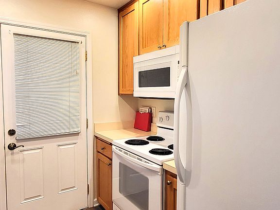 Nice and clean 975 Sq Ft. 2 bedroom, 1 1/2 bathroom duplex on non through Street. Features attached 1 car garage, covered patio, kitchen open to dining area, and low maintenance yard. The primary bedroom includes a walk in closet and full bathroom.