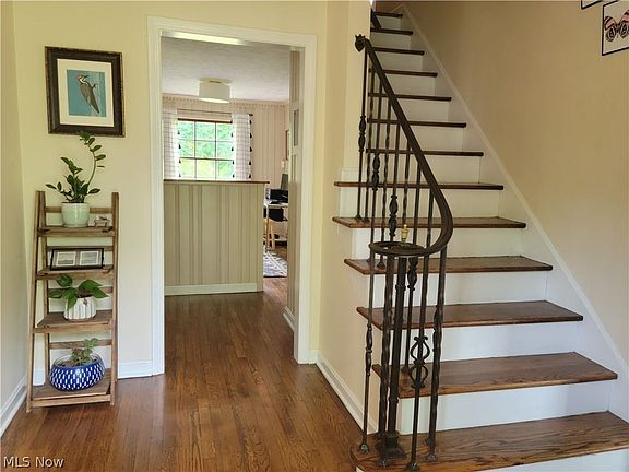 Lovely center-hall colonial. Nestled on 6 tenths of an acre with lush, mature trees. New Roof in 2020 and siding is new and the brick has been repainted in 2021. Furnace- 2002 and central air-2015. Hardwood floors throughout. Cozy dinette area off kitchen with built-ins. Center hall with formal living and dining rooms. Covered porch off the back of the home. Primary bedroom suite with updated bath and walk-in closets. Three other large bedrooms on the second floor with a hall bath. Both baths updated in 2016. The lower level has a finished rec/family room with a gas fireplace. This home has storage area, plenty of windows with natural daylight and is convenient to the park systems, downtown Akron, the University and the hospitals.