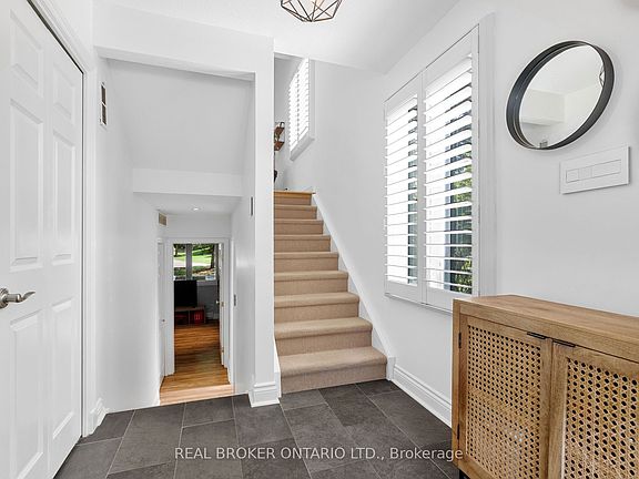 Rarely offered end-unit townhome backing onto a tranquil community park in the heart of McKellar Park/Westboro! This beautifully updated 3-bedroom, 2.5-bathroom home blends style, comfort, and lifestyle in one of Ottawa's most desirable locations - just a short walk to Westboro Village shops, exceptional dining, NCC trails, and the upcoming Sherbourne LRT station. Inside, dramatic 11 ft ceilings and abundant windows flood the space with natural light, creating an airy, open-concept design. The updated kitchen showcases custom cabinetry, quartz countertops with breakfast bar, glazed subway tile backsplash, and high-end stainless steel appliances including a gas range. A stylish dining area and spacious living room open directly onto a private glass-enclosed balcony, perfect for morning coffee or evening relaxation. A convenient laundry room completes this level. The third level features a large primary suite that offers built-in closets and a renovated ensuite, while two additional bedrooms and a full bathroom provide comfort and flexibility for family or guests. Hardwood flooring spans both the second and third levels, adding warmth and character throughout the living spaces. The walk-out lower level includes a family room with fireplace that could double as a home gym or media room, powder room, and direct access to a recently updated interlock patio overlooking the peaceful park-like setting, a perfect outdoor retreat. With thoughtful updates throughout, a spacious layout, and a well-managed, pet-friendly community, this home offers the ease of low-maintenance condo living with the feel of a semi-detached property. Located in the Broadview/Nepean school catchment, this rare end-unit opportunity is one you won't want to miss!