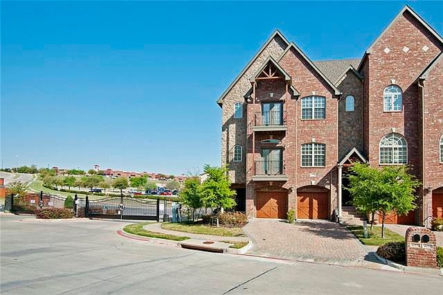 IMMACULATE LUXURIOUS END-UNIT TOWNHOME WITH NATURAL LIGHTING&OPEN FLOOR PLAN in gated community with private clubhouse, gym&pool. Over $40K Luxury upgrades include soaring ceilings, beautiful wood floor, French doors, vanity sinks, heavy crown molding, solid core doors&balconies overlooking the N. Dallas skyline, gourmet granite counter&ambient LED lighting kitchen. Master retreat with oversized BDR, closet, bathroom with dual-facing fireplace.
