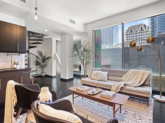 DTLA Living with VIEWS. This stunning 1 bed / 1 bath / 920 sq ft condo is one of the few highly coveted two-story floor plans, boasting incredible natural light, epic views and a well-designed layout. Positioned with direct access from the 15th and 16th floors, of the prestigious Hope Street Lofts building in DTLA, this unit embodies modern urban living. The main living area offers floor to ceiling windows, consistent flooring throughout, reclaimed wood clad media wall, in unit laundry and recessed lighting. The kitchen marries style & contemporary finishes with efficiency and includes a stainless steel appliance suite as well as custom tile work. Upstairs, a true primary suite boasts breathtaking city views, multiple closet & storage solutions, a spacious en suite full bathroom and convenient projector screen with media system. One dedicated, unassigned parking spot is included with the unit, in the private building garage. The Hope Street Lofts offers a classic art deco façade, 24-hour concierge & controlled access, fitness studio and sprawling roof top patio with 360 degree DTLA views, with the 7th St Metro Station at the base of the building. Conveniently located in the Fashion District, you’re immersed in the shops, restaurants and vibrant lifestyle that make this one of LA’s hottest neighborhoods. Welcome Home.