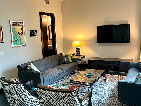 1 bdrm, 2 full baths, or can be partitioned to a 2 bdrm (living room area). Perfect downtown location. Directly above 7th St Metro stop and across from the BLOC. Corner apartment with great views and lots of light. Full length windows in all open spaces. Large walk in closet through second bathroom (not pictured). Owner pays for water, electric and gas. Tenant pays for cable. Small pets allowed. No smoking. First months and deposit required at lease signing. Rental will be month to month after completion of 1 year lease.