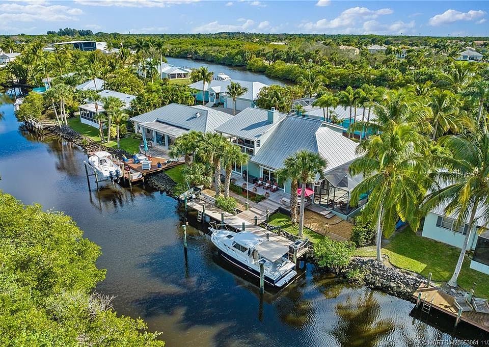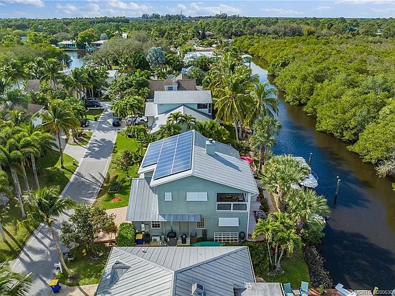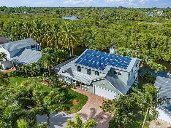 Boater's Parаdіѕe! STUΝNΙNG Waterfront & Presеrve vіews! Your very own Tropical Oasis w/lush colorful plants, Fruit trees, Hardwood (IPE) Multi Level decking, Custom heated/salt water Pool, Brand NEW Pergola w/Trex deck & 62+ft Dock on a deep canal for your boating pleasure. Watch manatee & beautiful birds as you relax or fish by the water's edge. This Solid Built CBS 2 story Home has soaring 21 ft ceilings, Hurricane Impact Windows/Doors, Metal Roof & Solar Panels for Low Electric Bills! Features: Granite kitchen, laminate flooring, coastal color palette, 3.5 baths & beautiful views of the shimmering water & bountiful nature! The Open Floor boasts a chef's Kitchen, Dining Area & Great Room. Two Owner's Suites w/private baths & walk in closets, 1st Floor Primary Suite has sliders to an expansive Deck perfect for your morning coffee. 2nd story primary Suite boasts panoramic waterfront views & delightful covered Balcony. 3rd Ensuite Bedroom perfect for guests. Expanded Garage w/workshop