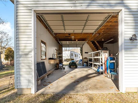Opportunity awaits! Conveniently located near area amenities, this single-owner home is ready for its next chapter. The first floor features a spacious suite with high ceilings, walk-in closet, and private bath, currently being used as the primary bedroom. Open concept living connects kitchen & dining and flows into a large versatile space with wood-burning stove and fantastic light. Upstairs are four bedrooms and a second full bath. The unfinished basement has great potential for those who want to add to the already 2,000+ square feet of living. Outside, the 2.5+ acre property includes an expansive backyard with your own basketball court. Basketball not for you? This is the perfect spot for pickle ball! Across the breezeway, a huge garage with two 12' doors provides ample storage and access from both the front and back yard. Perfect for large machinery, boats, and more! Come customize this great property, and make it your own!