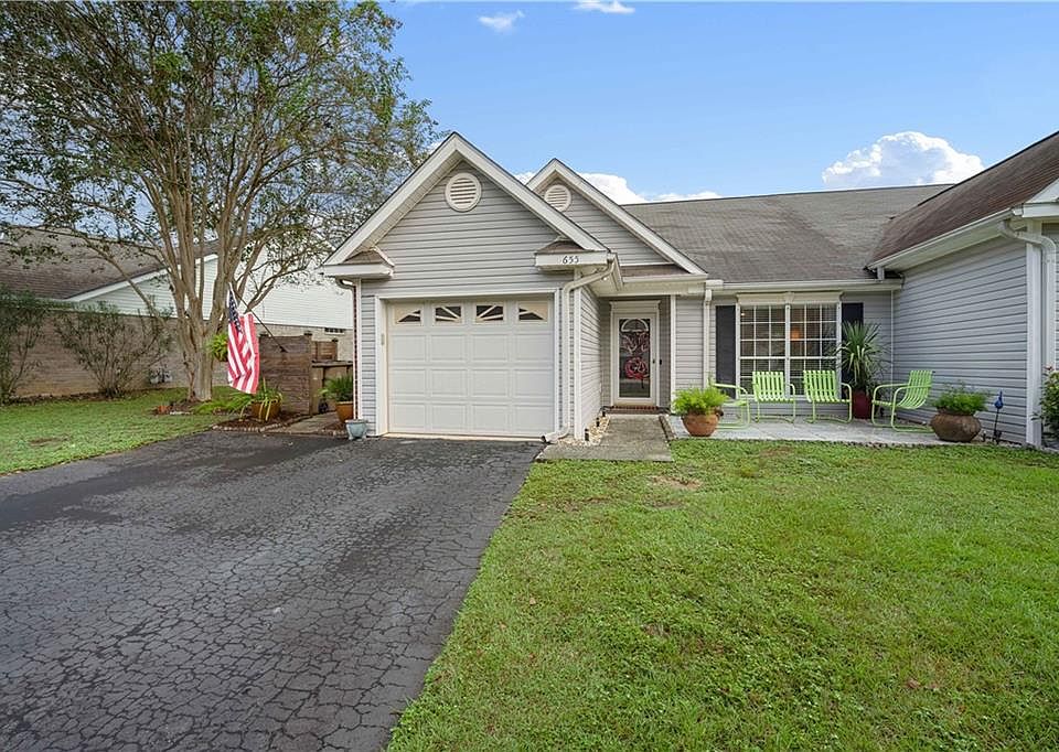 GATED COMMUNITY!! Gorgeous end-unit garden home with three bedrooms, two baths, and beautiful updates throughout! The kitchen is fresh and modern with white quartz countertops, Samsung Bespoke appliances, a stylish backsplash, a touchless Delta faucet, and an Elkay sink, all creating an upscale, designer appeal. Enjoy attractive lighting in every room, with recessed fixtures highlighting the open living, dining, and kitchen area. Key updates include a water heater (2021) and HVAC (2022). As an end unit, this home offers extra windows and additional driveway parking. The outdoor spaces have been thoughtfully enhanced, featuring a courtyard-style front patio and a backyard with new sod, level grading, and a sprinkler system covering all three sides. Note: New LVP flooring has been installed in the primary bedroom and will be added to the remaining bedrooms and common areas after the seller moves out. The HOA ($130/month) covers gate maintenance, streetlights, mowing, edging, and lawn blowing. There is a storage lot on the west side of the subdivision if you have a boat, RV, etc. Seller is a Licensed Realtor in the State of Alabama.