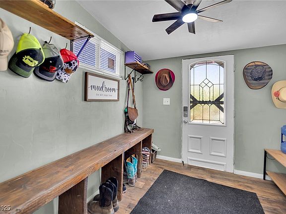 Discover your dream rural retreat! This charming 3-bedroom, 2-bathroom home situated on over 2 acres offers comfort, convenience & country living at its best. Kitchen features stainless steel appliances & opens up to two different dining areas, one with a built-in table to gather. Living room is welcoming with high ceilings. Large primary bedroom is separate from 2 guest rooms that share a bathroom. Enjoy peace of mind with a newer A/C installed in 2021, a serviced well (just 6 months ago), and a water softener already in place. The fully fenced lot includes a solar-powered automatic gate for easy access & covered patio in the back with an in-ground trampoline. Equestrian lovers will appreciate the 3 horse stalls, hay barn and tack room—ready for your animals. Plus, a chicken henhouse and shed are included for your homesteading needs! Whether you're looking to start a mini farm or simply enjoy wide open space, this 3 bed, 2 bath home has everything you need to live the good life.