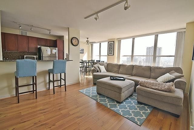 Park Place Tower - 28th floor, spacious one bedroom unit facing south with great views of the loop, lakefront, and Wrigley Field. No carpeting - laminate wood floors, updated kitchen with stainless steel appliances and granite counter tops, new screen shades throughout - room darkening in bedroom; IKEA hall closet, walk to Wrigley. Best pool in Chicago with barbecue grills and full-sized basketball court, 24 hour doorman/engineer on-site, fitness center, laundry in building. Rent includes Internet, basic cable, heat and AC. No pets, no smoking. Rent includes Internet, basic cable, heat and AC. Tenant only pays for electricity. No pets, no smoking.