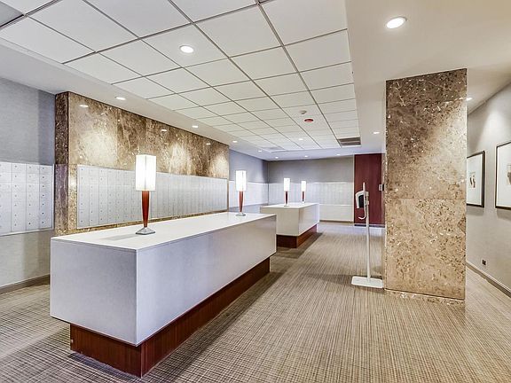 Fully equipped fitness centerModern soft-close cabinetryNear floor-to-ceiling windowsSteps from the lakefrontSleek quartz countertopsNortheast corner condoExpansive primary suite