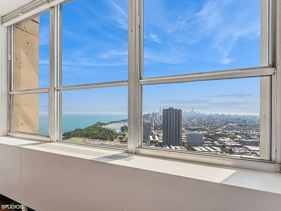 Have your pie in the sky! Situated on the 45th floor, this magnificent 1-bedroom unit offers unparalleled CITY and LAKE views that will take your breath away. If you want VIEWS, look no more! The open floor plan creates a seamless flow, allowing you to soak in the incredible sights from every corner. The modern kitchen is a chef's delight, featuring an oversized island, elegant cherry cabinets, and stainless steel appliances. The upgraded bathroom boasts a luxurious walk-in shower. This spacious unit is adorned with beautiful wide plank hardwood flooring throughout, complemented by Hunter-Douglas specialty sun block blinds that provide both style and privacy. You'll appreciate the AMPLE closet space, equipped with organizer shelving for all your storage needs. Experience the convenience of living in a full-amenities building that includes a 24-hour door staff, an on-site manager, a party room, a business center, dry cleaners, a state-of-the-art fitness center, a pool, dog park, basketball court, theater, and a full-service convenience store. Embrace the vibrant lifestyle with just steps to Lake Michigan, Lincoln Park, Wrigley Field, and an array of dining and entertainment options. Your assessments cover CABLE, INTERNET, HEAT, A/C, and water. Enjoy the luxury of a TWO-car garage parking spot, also available for purchase for an additional $25k. Non-valet, so you'll never have to wait! Don't miss this opportunity to live in this gem. Pet & investor friendly. SUBMIT YOUR OFFER! Inquire & schedule a tour with agent Fernando today!