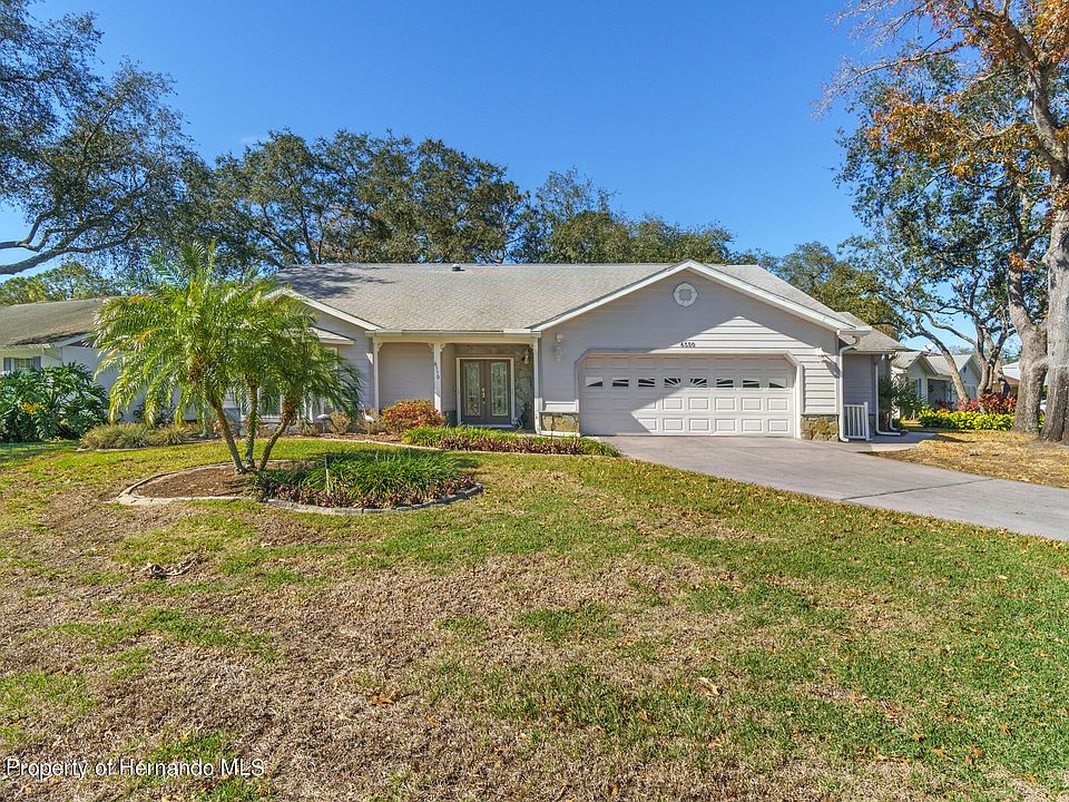 This Unique home is a custom built Oakmont model, 3 bedroom, 3 baths, 2 car garage, with a separate ''mother-in-law'' addition with private entry, large En suite and laundry room, 2293 sq. ft. of living space. Main entry features double door with lovely glass inserts, great room, dining room family with custom solar tubes, family room has sliding windows looking out the large L- shaped lanai with hot tub and sky lights. The wide galley kitchen has Granite counter tops, refaced white cabinets and double pantry. Guest bedroom with an extra large walk-in closet, updated baths with Granite counter tops and refaced cabinets. Windows Replaced 2009, A/C 2015, Roof 2007. Timber Pines is a 55+ gated community with 4 golf courses, Club House, Remodeled Restaurant and Bar, Performing Arts Center, Pools & Hot Tubs, Fitness Center, Tennis, Pickle Ball and over 100 different clubs. Basic cable and high speed internet included in the monthly HOA. Golf Cart included in the Sale. Furniture available separately.
