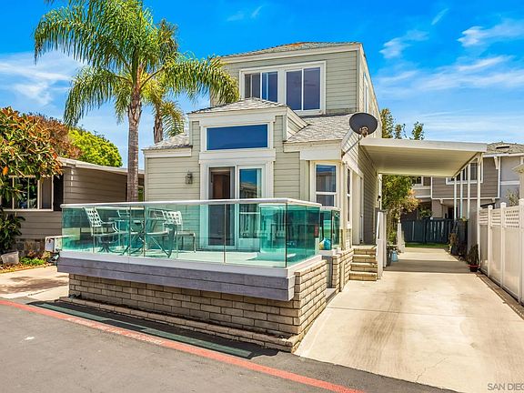 Rarely Offered, detached two story home with an Ocean View for $425,000! 3 bedrooms, 2 baths, 1,410 sq. ft. home across the street from Ponto State Beach! Beautifully appointed, hard wood floors, vaulted ceilings and move in ready. Master bedroom features a nightly sunset view. You'll never leave and wonder what took you so long to get here! No property taxes, no HOA dues. Space rent: $3,150 per month. Community pool and jacuzzi, community room, game room, gated community, security, street maintenance.