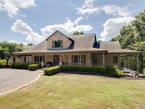 Step into this luxurious 17+ acres estate that boasts modern style with exceptional functionality in the heart of Godfrey and only minutes from town. This home features over 6500 sq. ft. of total living space including 6 bedrooms, 4.5 baths, an oversized 3 car attached garage, 2.5 acre stocked pond with zipline, and a 40x96 pole barn. This property is perfect for those that enjoy nature and privacy, or would be an excellent place to entertain family and friends. The home's layout flows with an open concept yet has the space to seclude yourself with a book or peaceful rest. The main floor has luxury vinyl plank throughout, fireplace in living room, custom kitchen with Viking cooktop, granite tops, kitchen island and breakfast bar, an enormous primary bedroom and bathroom with walk in closets and attached laundry, a large office overlooking the wrap around porch, circle drive and pond. A sliding glass door at the back of the living room leads to the covered deck with T.V. and fireplace. The basement boasts a large family room area with fireplace, rec room, wet bar, another bedroom, a bonus room for gym equipment, a full bathroom, and a walkout to the backyard. The second floor features 3 bedrooms, 2 full baths and a 12x20 bonus room. All of the built ins and custom details of this home and property are sure to impress! Don't miss an opportunity at this once in a lifetime property!!!