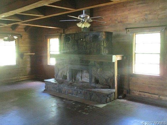 This 3BD/1BA 2-story log home sits on 160 acres m/l. It features 2 wood burning fire places in the living room. It also features a work room and storage room inside the house. The land does have ponds and corrals.