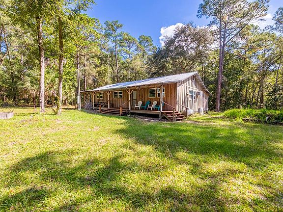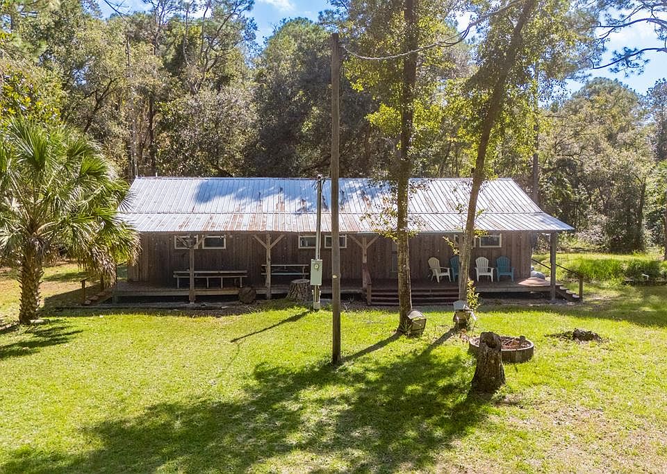 Your Florida Hunting Camp or Peaceful Country Home is waiting for you. If you're an avid hunter who enjoys peace, quiet, and the convenience of having your own private retreat, this 30-acre property is the perfect fit. This rustic lodge is ideally located just minutes from several large hunt clubs in Levy County, making it a dream setup for any outdoorsman. Only 6.5 miles away, the charming coastal town of Cedar Key offers access to the Gulf of Mexico's best fishing, dining, and small-town coastal charm. Inside, the spacious cabin features a large open kitchen, living, and dining area—ideal for gathering with family and friends. There are two bedrooms with private full baths, plus an additional guest room for visitors. After a long day in the woods or on the water, unwind on the front porch, the perfect place to relax and swap hunting stories as the sun sets. Whether you're looking for a weekend hunting camp or a forever home in the country, this property delivers the best of both worlds.